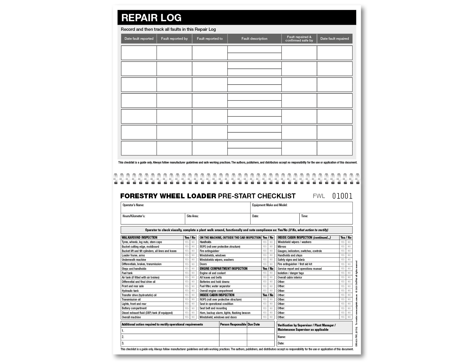 Forestry Wheel Loader Pre-start Checklist