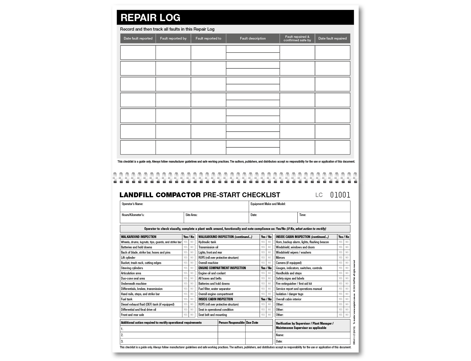 Landfill Compactor Pre-start Checklist